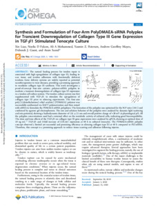• [thumbnail of Synthesis and Formulation of Four-Arm PolyDMAEA-siRNA Polyplex for Transient Downregulation of Collagen Type III Gene Expression in TGF-β1 Stimulated Tenocyte Culture]