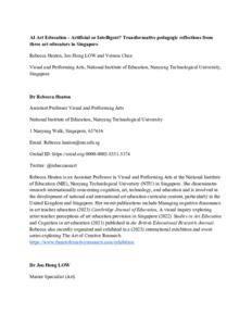 Heaton, Rebecca, Low, Joon Hong and Chen, Vernon, 2024, Journal Article, AI art education - Artificial or intelligent? Transformative pedagogic reflections from three art educators in Singapore Pedagogies: An International Journal, 19 (4). pp. 647-659. ISSN 1554-4818