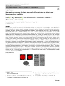 Li, Siwei, Mohammed, Ali A., Nommeots-Nomm, Amy, Shi, Xiaomeng, Barrak, Fadi, Heyraud, Agathe and Jones, Julian R., 2025, Journal Article, Human bone marrow derived stem cell differentiation on 3D printed bioactive glass scaffolds Journal of Materials Science: Materials in Medicine, 36. ISSN 1573-4838