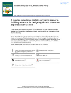 Jewitt, Carey, Golmohammadi, Lili, Petreca, Bruna, O'Nascimento, Ricardo, Fotopoulou, Aikaterina Katerina, Berthouze, Nadia, Obrist, Marianna, Cho, Youngjun and Baurley, Sharon, 2025, Journal Article, A circular experience toolkit: A dynamic scenario-building resource for designing circular consumer experiences in fashion Sustainability: Science, Practice and Policy, 21 (1). pp. 1-23. ISSN 1548-7733