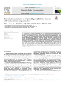 Lee, James J., Mohammed, Ali A., Pullen, Andy, Myant, Connor W. and Proud, William G., 2023, Journal Article, Mechanical characterisation of 3D printed lightweight lattice structures with varying internal design alterations Materials Today Communications, 36. pp. 1-11. ISSN 2352-4928