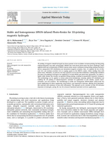 Mohammed, Ali A., Yao, Keyu, Ragaisyte, Ieva, Crestani, Dominic, Myant, Connor W. and Pinna, Alessandra, 2024, Journal Article, Stable and homogeneous SPION-infused Photo-Resins for 3D-printing magnetic hydrogels Applied Materials Today, 37. pp. 1-10. ISSN 2352-9407