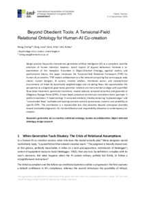 Wang, Ziming, Zeng, Junyi, Hall, Ashley and Gera, Krity, 2025, Conference or Workshop, Beyond obedient tools: A tensional-field relational ontology for human-AI co-creation at International Association of Societies of Design Research 2025, Taiwan, 2025-12-02 - 2025-12-05.
