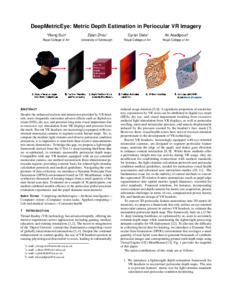 Sun, Yitong, Zhou, Zijian, Diels, Cyriel and Asadipour, Ali, 2023, Conference or Workshop, DeepMetricEye: Metric depth estimation in periocular VR imagery at ISMAR 2023, Sydney, Australia, 2023-10-16 - 2023-10-20.