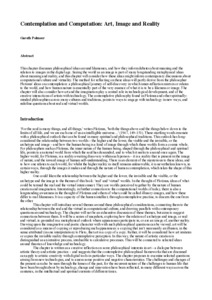 Polmeer, Gareth, 2024, Book Section, Contemplation and computation: Art, image and reality In: Giannini, Tula and Bowen, Jonathan, (eds.) The Arts and Computational Culture: Real and Virtual Worlds:. Springer. ISBN 978-3-031-53864-3