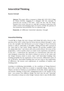 Vellodi, Kamini, 2025, Journal Article, Interstitial thinking Journal of Visual Culture, 23 (2). pp. 210-225. ISSN 1470-4129