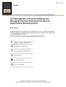 Oakley, Peter, 2025, Journal Article, Fire management in practice: Building and managing charcoal-fired assay furnaces as experimental reconstructions Ambix, 72 (3-4). pp. 389-414. ISSN 1745-8234
