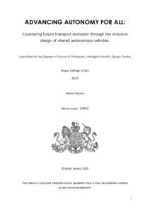 Severs, Robin, 2026, Thesis, Advancing autonomy for all: Countering future transport exclusion through the inclusive design of shared autonomous vehicles PhD thesis, Intelligent Mobility Design Centre.